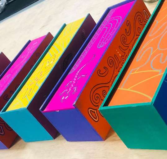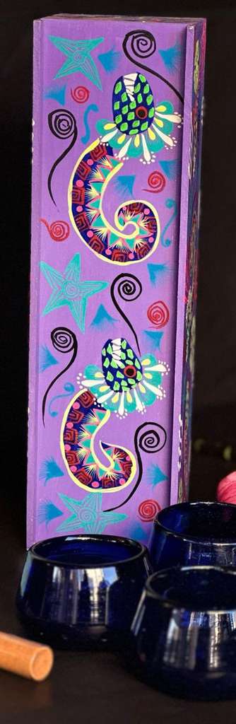 Las cajas de arte intervenidas por diversos artistas reflejan la riqueza cultural de distintas regiones. Cada caja, transformada en una obra única, incorpora elementos tradicionales y modernos, capturando la esencia local. Estas piezas destacan por su diversidad y creatividad, mostrando la identidad cultural y el talento de cada artista.