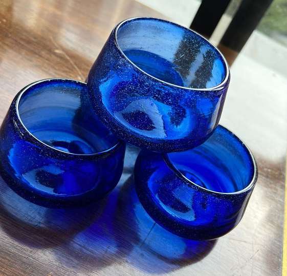 Mezcaleros Azules Vidrio Soplado. Set de 4 piezas.